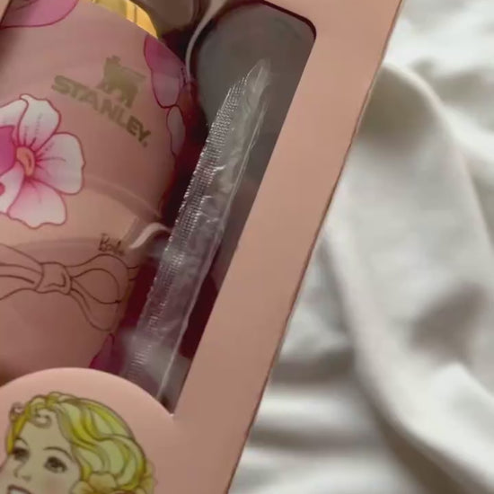 Peaches ’N Cream Quencher – a nostalgic nod to Barbie’s dreamy elegance and Stanley’s rugged performance. This 40 oz (1.18 L) tumbler is drenched in soft peach and cream hues, evoking the sweet, iconic Barbie style of the ’80s. Designed for style and built for everyday adventure, it keeps your drinks at the perfect temperature while turning every sip into a fashion statement.